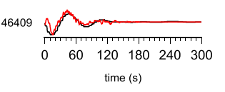图2 由海底压力转换的海底速度垂直分量(黑线)与合成波形(红线)的比较