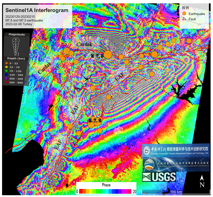 evo真人视讯利用卫星InSAR技术测定土耳其-敘利亚Mw7.8和Mw7.5地震同震形变