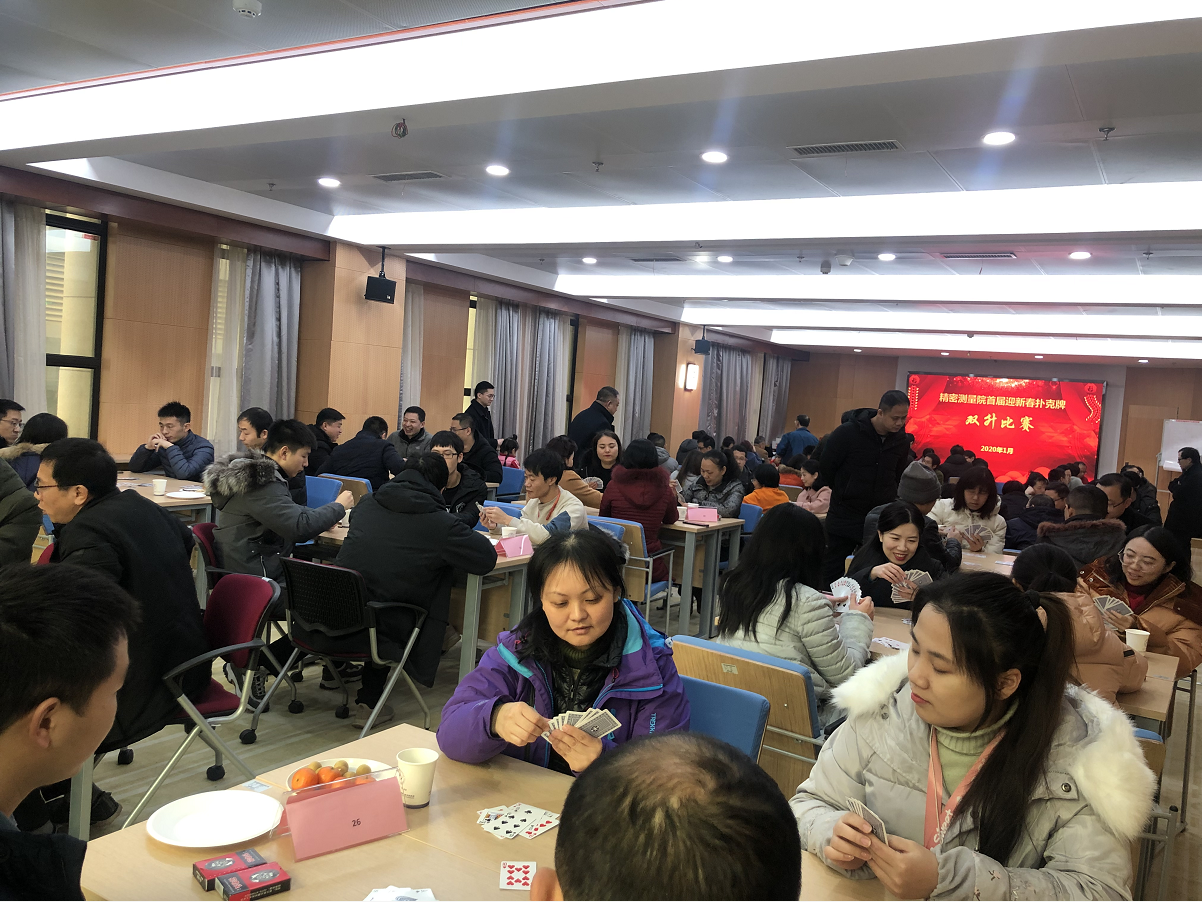1月19日,“evo真人视讯首届迎新春双升扑克牌比赛”拉开了帷幕。本次比赛吸引了56对选手报名参加。比赛现场,上百名选手齐聚一堂,摩拳擦掌,跃跃欲试,热闹非凡。