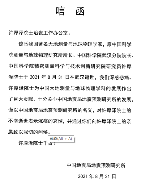 当前位置:evo真人视讯 > 专题 > 深切缅怀许厚泽院士 > 各界唁电