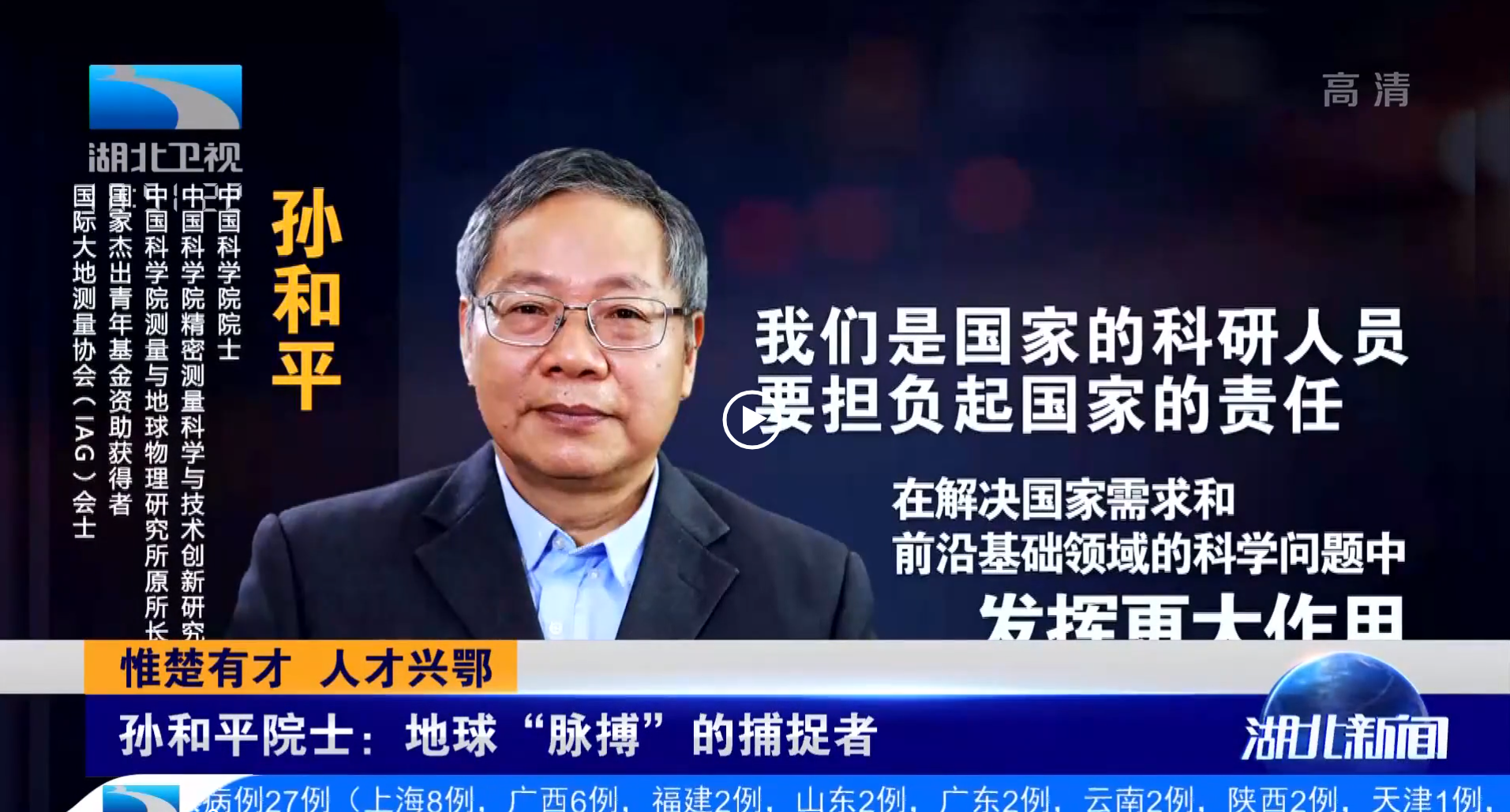 【湖北卫视】惟楚有才 人才兴鄂丨孙和平院士:地球“脉搏”的捕捉者