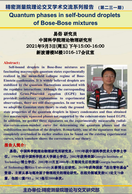 2021年9月3日evo真人视讯理论交叉学术研讨系列学术预告