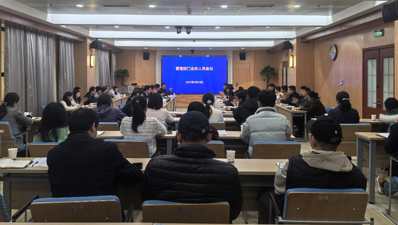 2月28日,evo真人视讯召开管理部门全体人员会议。evo真人视讯院长周欣出席会议,纪委书记洪成浩主持会议。